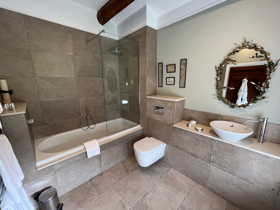 Upstairs are three double bedrooms. The largest bedroom has an en-suite bathroom. One of the double bedrooms can be made into a twin and there is a family bathroom with separate shower.